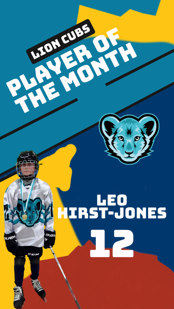 Leo has shown massive improvements both on and off the rink over the past few months. Known as a quiet player, Leo has recently stepped up his confidence – even cheekily telling Coach James that football is better than hockey (we all know that’s not true 😜).