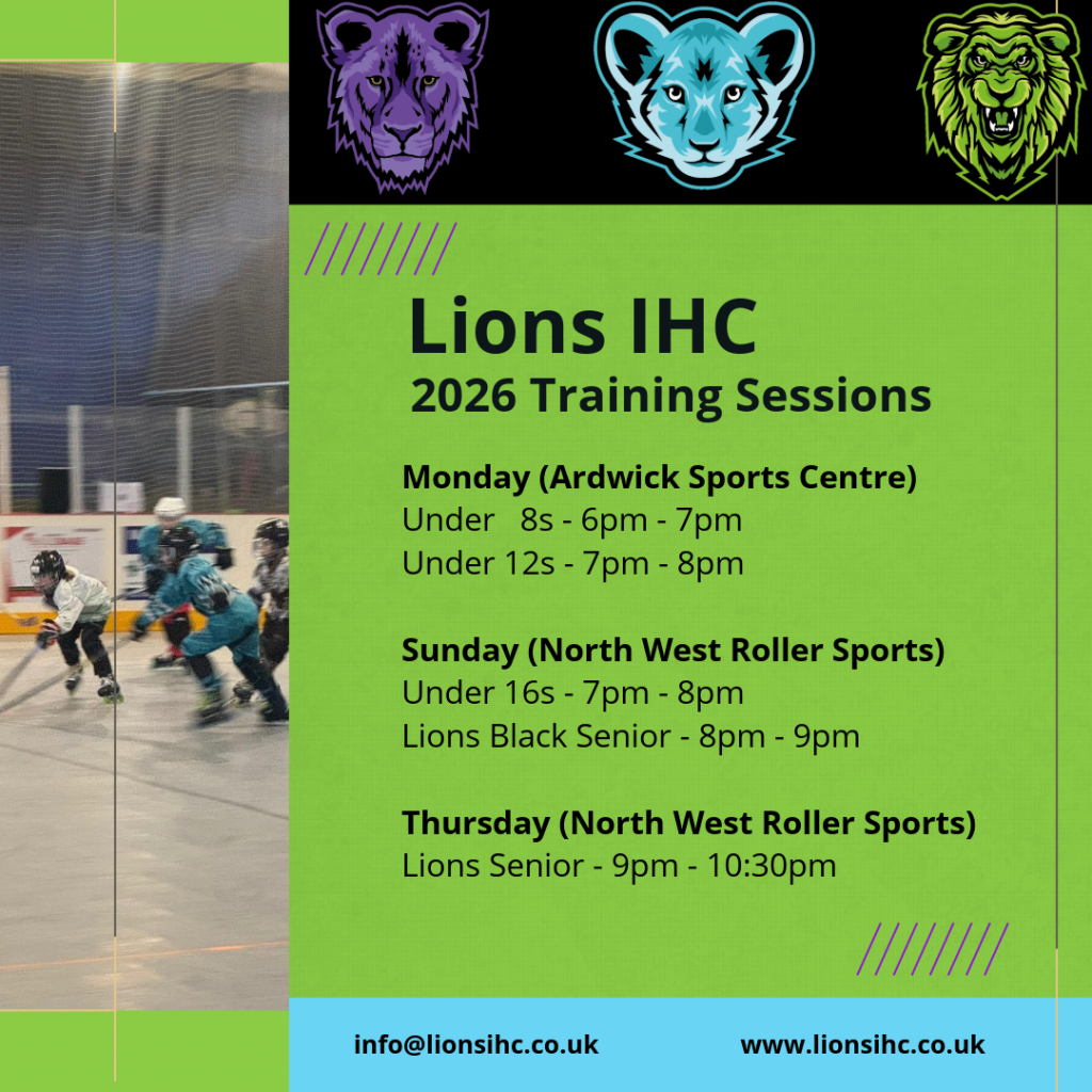 Playing up is always at coach discretion and based on player readiness, safety, and confidence. With this structure, Lions can now offer all junior players the chance to play up one or more age groups in the UKIHF Junior Leagues—helping to push Lion Cubs forward at the right pace.
