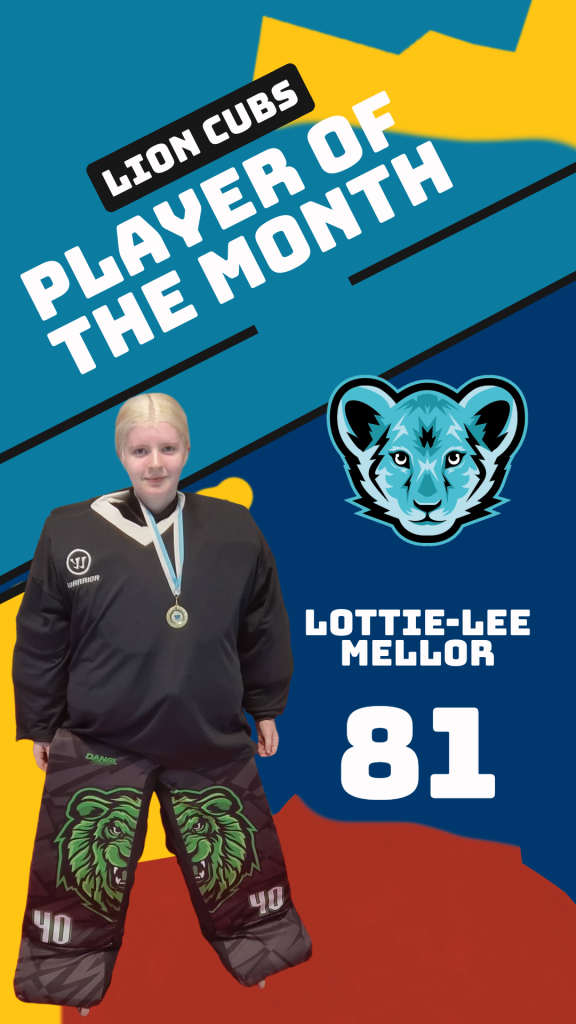Lottie has been guarding the net for just over a year, and wow – what a journey! Since joining Lion Cubs, Lottie has levelled up massively: ✅ Training with our Senior Lions every Thursday ✅ Playing in a senior friendly against Northern Lights – only 2 goals conceded in 20 minutes! ✅ Bringing her A-game every time she hits the rink, especially for our young Cubs teams